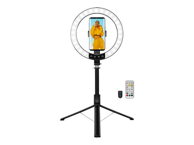 • Foldable LED ring light with extendable selfie stick tripod