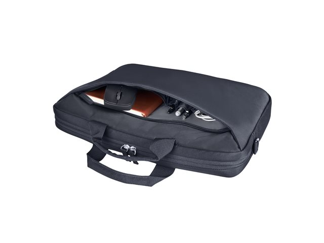 - Skydda din utrustning när du är på språng med denna hållbara portfölj för en 16-tums bärbar dator. Den är vattenbeständig och tillverkad av 600D polyester för extra styrka. Den har ett vadderat datorfack som skyddar mot stötar och repor och levereras med en 3-årsgaranti.